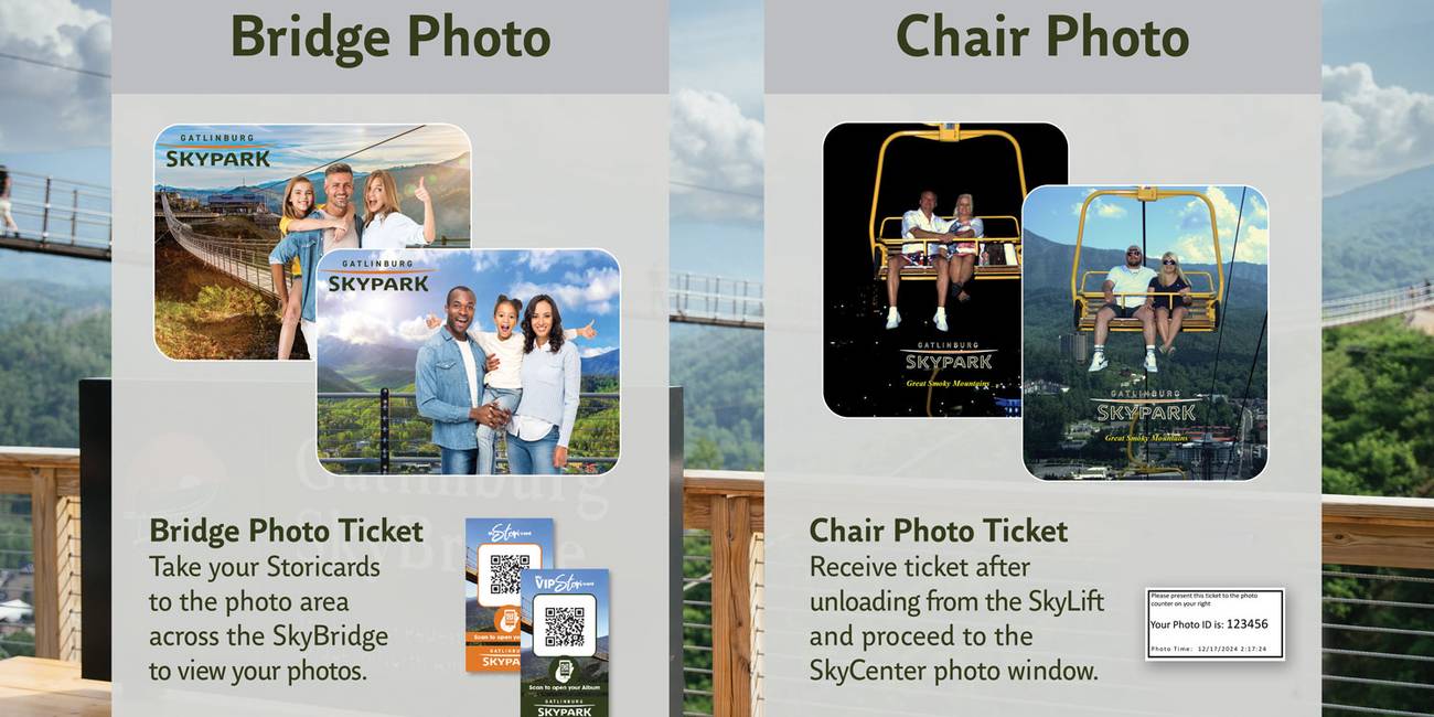 Receive the ticket after unloading from the SkyLift and proceed to the SkyCenter photo window.